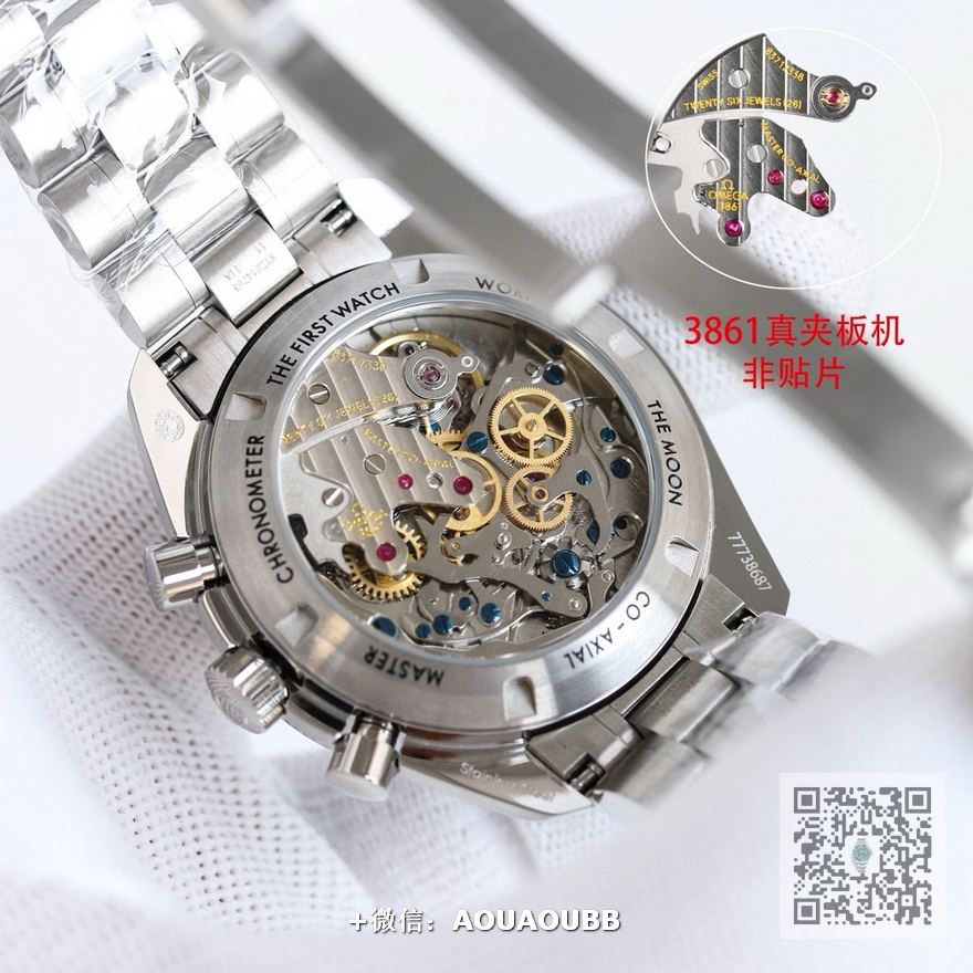 【品牌】欧米茄【产品介绍】欧米茄 OMEGA 超霸系列 “欧米茄的灵魂”手动3861背透款 最新登月第四代超霸腕表 310.30.42.50.01.002是一款经典的计时码表,尺寸和外观:腕表直径42mm,厚度13.6mm,采用精钢表带和表链,耐磨损蓝光玻璃,平面印刷欧米茄标志。表盘设计:黑白两色的搭配经典而严肃,TACHYMETRE测速圈采用线性刻度, 凹陷盘面,对称式计时数字盘和小巧的棒头指针。计时秒针略超出盘面刻度,以保证各个角度观看都能清晰指示。三眼计时圈位于9点、3点和6点位置,分别用于显示日常走时秒针、30分钟计时和12小时计时。表带采用五珠带设计,相比之前的三截板带加修饰纹,显得更细、更圆、更薄。表扣也从圆形改为扁平设计,并有六道凹槽。腕表设计简约,功能实用,是一款非常优秀的计时码表【款式】男款【尺寸】直径42mm【表带】精钢表带【镜面】蓝宝石镜面【机芯】3861机芯【防水】50米【配件】原装盒,说明书,质保卡,吊牌,香港机打发票【品质检测】保证所有手表实物拍摄,所见即所得 , 手表发货前都会有严格检查测试,确保您收到的手表无质量问题
