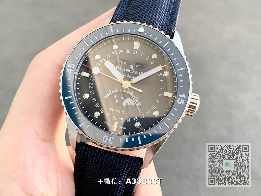 TW出品 宝珀五十噚系列5054-1110-B52A男士多功能机械腕表 搭载6654.P自动机械机芯 直径43毫米,厚度13.3毫米