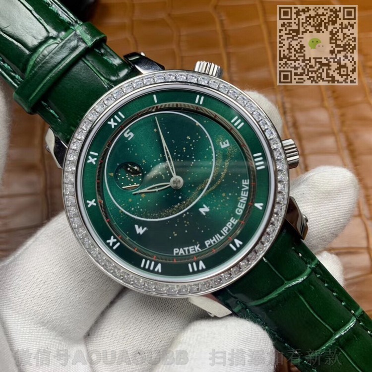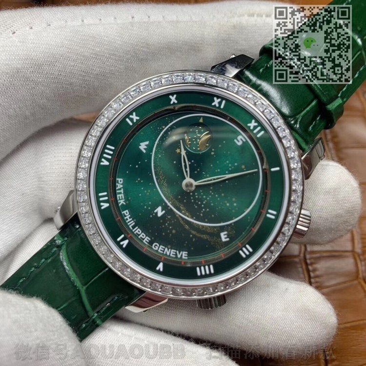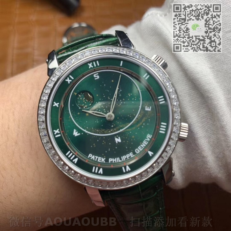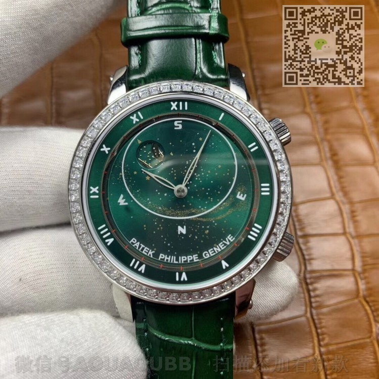 【产品介绍】百达翡丽星空升级终极v4版升级了 ️升级日历的排法和正品一样的顺序️整个手表的厚度更加接近正品的厚度。 你可想象把星空佩戴在腕上吗?这款星空腕表独具特别星象功能,蓝色圆表盘上就能欣赏日内瓦苍穹图,还有金色月球运行轨迹,熬时20个月 采用原装进口9015改cal.240机芯,造而成的珍珠陀和正品一样机心 表盘上的月亮会根据天空的月亮月满圆月蚀弯的情况自动变化 表壳前后玻璃采用先进技术处理让玻璃折射光提高,让表盘看起来更加通透 似乎没有玻璃的感觉 后盖和玻璃也采用和正品一样凹型 打破传统手表后盖和玻璃平行 2字把头调时间,日历,月亮盘 5字位把头调星空盘转动。此表在手别无所求。