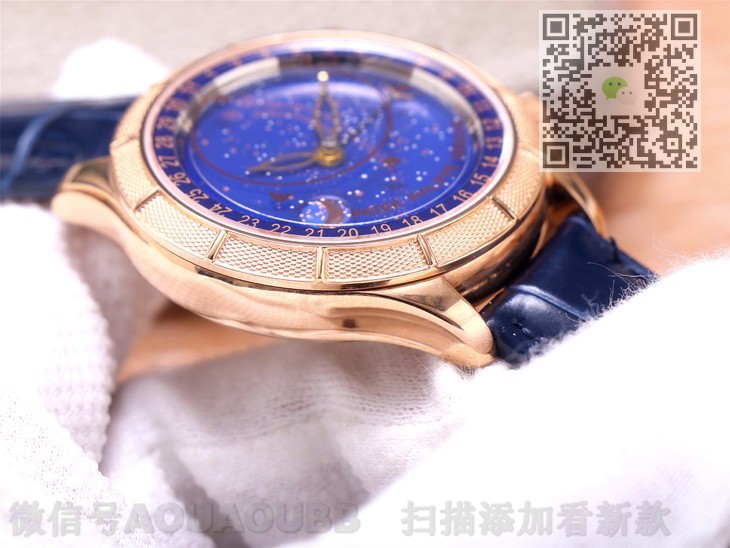 3、【功能】2点位把头第二档快调日历月牙指针,同时会带动月行轨迹;日历刻度和正品一样顺时针排列;5点位把头可变换苍穹图案;星空图案即为秒盘,每一秒都能感受斗转星移;天狼星与月亮中天时间、指针式日期显示。几乎实现了原装所有的功能,进入众人眼帘便知这不是一般的手表。