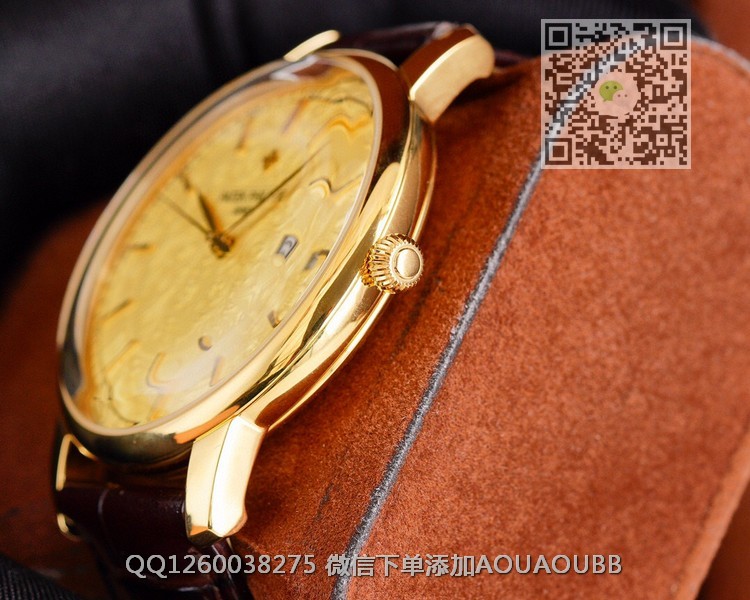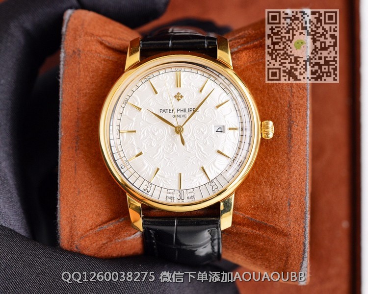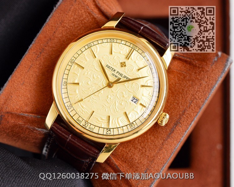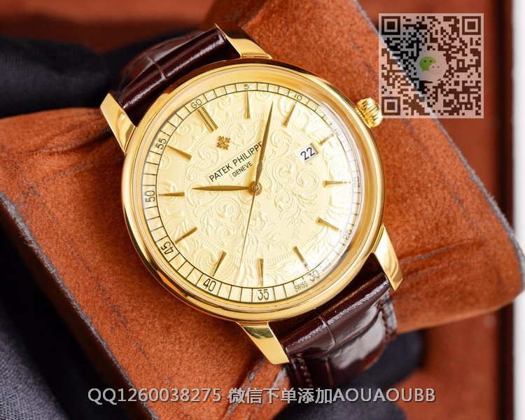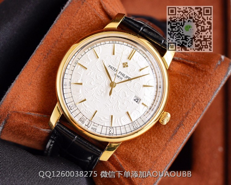 【产品介绍】1.百达翡丽PATEK PHILIPPE 升级版。团队历时9个月精心设计,敢为人先,力求完美,突破多层技术瓶 2.市场独家最新锅盖玻璃材质,超强的3D立体感,超薄工艺,直径42mm 3.款式采用原装9015机芯,每小时振频28800次,零返修质量 4.款式搭配意大利牛皮让手腕更贴合舒适