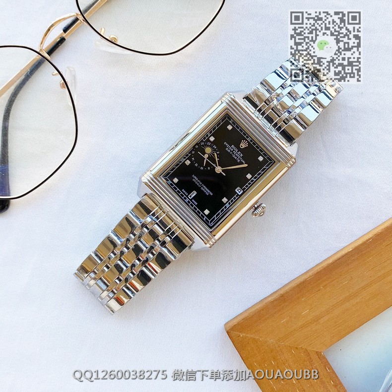 【品牌】劳力士【产品介绍】劳力士典藏系列男士方形全自动机械腕表,三针半搭载月相设计,3点位置日历显示 9点位置24小时月相显示,技艺精湛,独具匠心,尊贵大气,绅士风范【款式】男款【尺寸】34x44mm【表带】精钢表带【镜面】蓝宝石镜面【机芯】进口全自动机械机芯【防水】50米防水【配件】原装盒,说明书,质保卡,吊牌,香港机打发票【品质检测】保证所有手表实物拍摄,所见即所得 , 手表发货前都会有严格检查测试,确保您收到的手表无质量问题