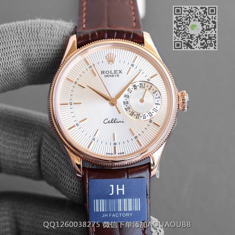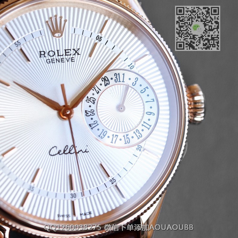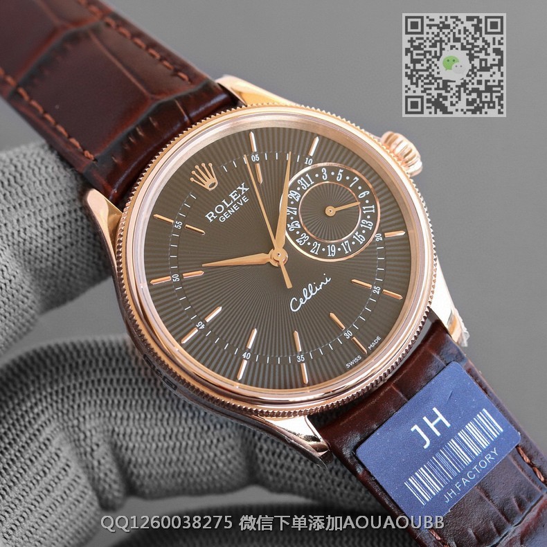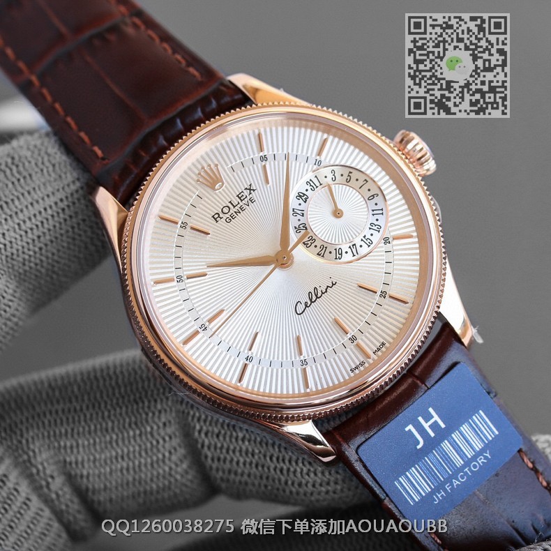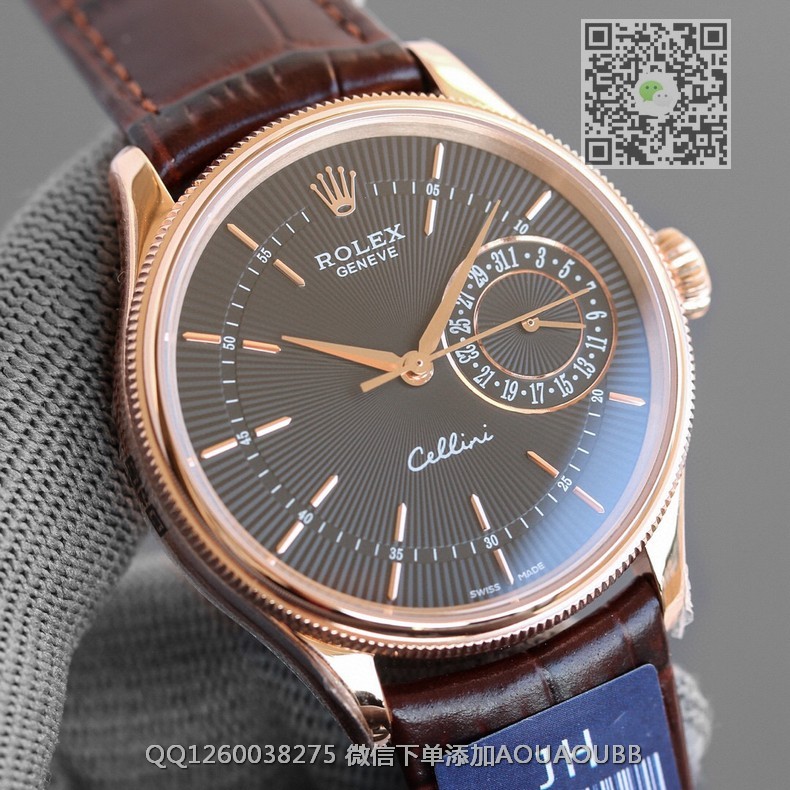 【品牌】劳力士【款式】男款【产品介绍】劳力士切利尼日历型全系列到货,亲民的价格原版99%相识度和体验【尺寸】39*11.5mm【机芯】ROLEX3165一体机芯,大三针带小针日历功能,功能同原版一致【表壳】精钢顶级电镀厚金+抗氧化保护【字面】雕刻波浪纹底制造工艺纹路立体感超强【指针】原装顶级批花工艺【镜面】镀通透蓝宝石水晶镜面【表带扣】20*16尺寸纹节清晰、顶级全包边工艺柔软的类美正品,同原版针扣方便使用【表带】意大利牛皮表带【镜面】蓝宝石镜面【防水】100米防水【配件】原装盒,说明书,质保卡,吊牌,香港机打发票【品质检测】保证所有手表实物拍摄,所见即所得 , 手表发货前都会有严格检查测试,确保您收到的手表无质量问题