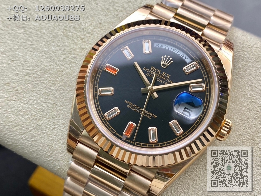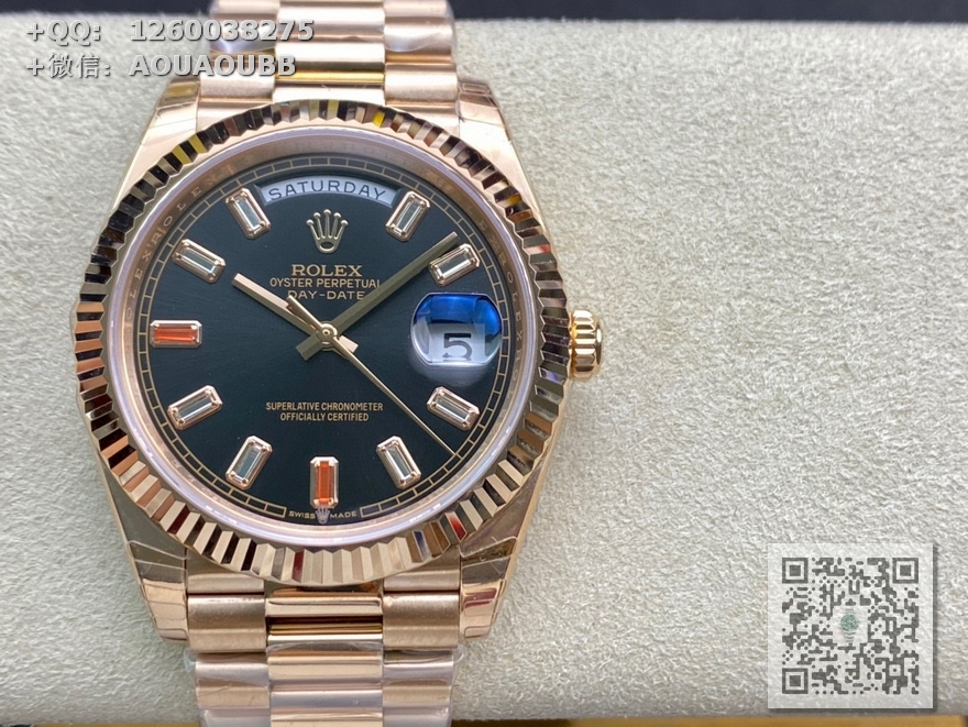 【产品介绍】EW Factory力作V2升级版 劳力士Rolex星期日志型40mm终极版 搭载原版3255自动机械机芯228239系列腕表,40毫米直径,研发耗时16个月!原版1比1开模。重点升级了以下几个要点:1.表壳直径与2019最新版3255型系列一致40毫米。2.表带头粒与原装一致,5件拼装,难度非常高,表带与表壳交错型无缝连结。3.把头皇冠处下方修改为与原版一致的两个圆点。4.表扣与原版一致里面加装了弹簧,字体大小工艺和原装一致。5.表壳侧面与原版一致增加二维码防伪、底盖有验货二维码。6.表壳与表带连接处的壳身刻有与原版一致的型号数字228239。7.表的内影圈刻上了与保修卡一致的产品流水数字,而且做到了正品一致的一表一卡一码 绝不重复)8.附全套原版套装配置包括(保修卡,说明书,型号条型码与正品一致)全套包装与正品一致(市面上真正的原装一比一星期日历型)