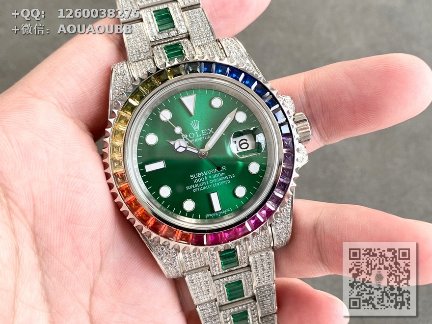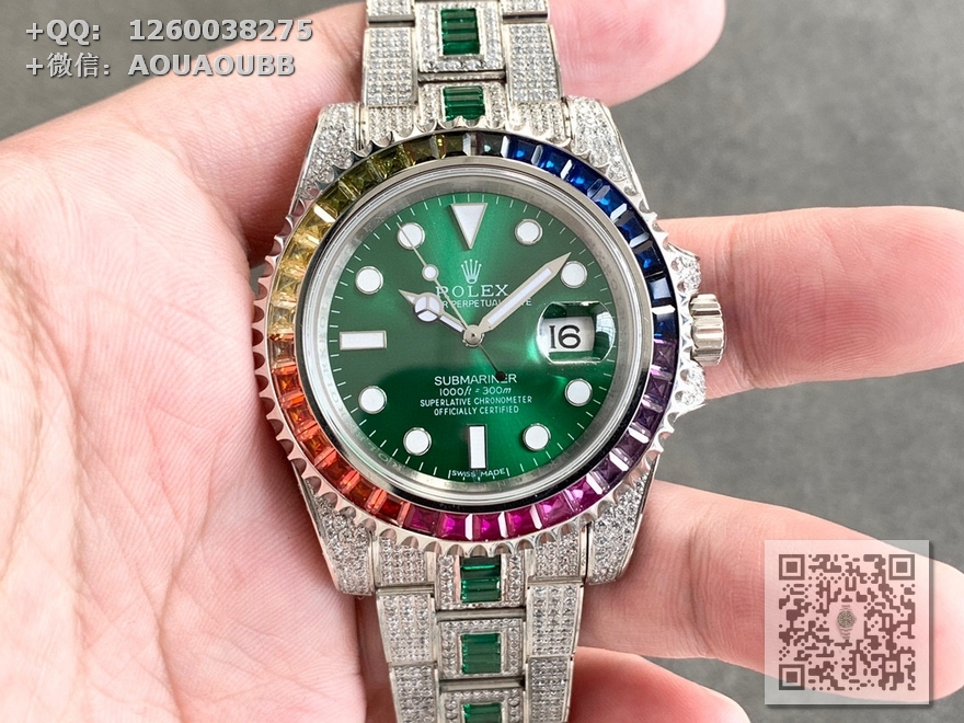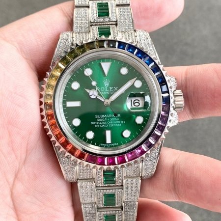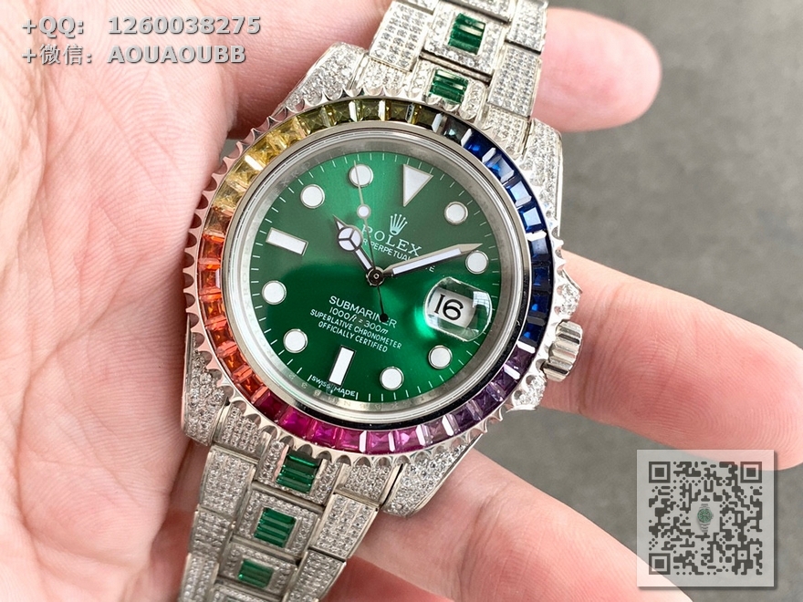 【品牌】劳力士【款式】男款【产品介绍】N厂高端版本,顶级玩家毒物珍品,她奢华至极,新高度——完美还原史上最昂贵的劳力士满天星腕表——潜航者型密镶钻特别款!行走的艺术品,极致奢华身份与地位的象征,气场一目了然!实物惊艳!爱不释手【表壳】腕表尺寸40mm。采用德国顶级904L蚝式钢所制。表圈,表壳,表链都密集镶满最顶级的施华洛世奇美钻。尽量还原正品奢华至极的无敌质感。【表带】采用904L蚝式钢打造,蚝式表带于1930年代末推出,由三排宽大、平整的链节组成,极其坚固,表链全身也整齐缜密的镶满美钻,效果光华四射。【机芯】采用瑞士ETA836全自动机芯,性能极为稳定。【镜面】蓝宝石镜面。超强夜光字面,字面颜色更细腻做出了与正品一致的视觉效果!上手震撼尊贵非凡。您值得拥有!【防水】100米防水【配件】原装盒,说明书,质保卡,吊牌,香港机打发票【品质检测】保证所有手表实物拍摄,所见即所得 , 手表发货前都会有严格检查测试,确保您收到的手表无质量问题