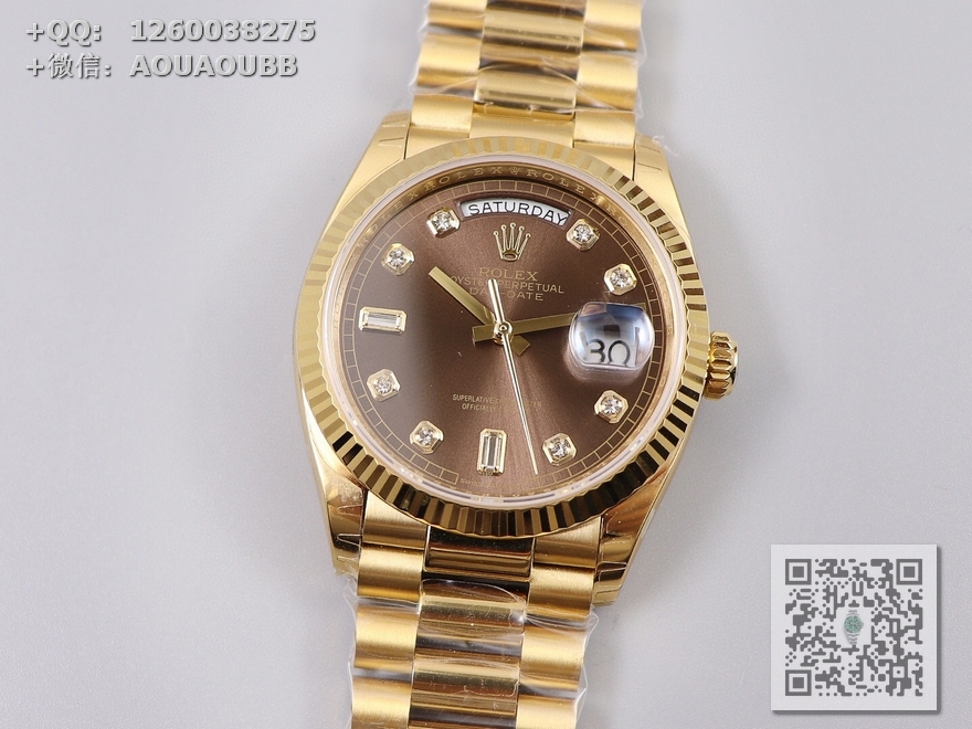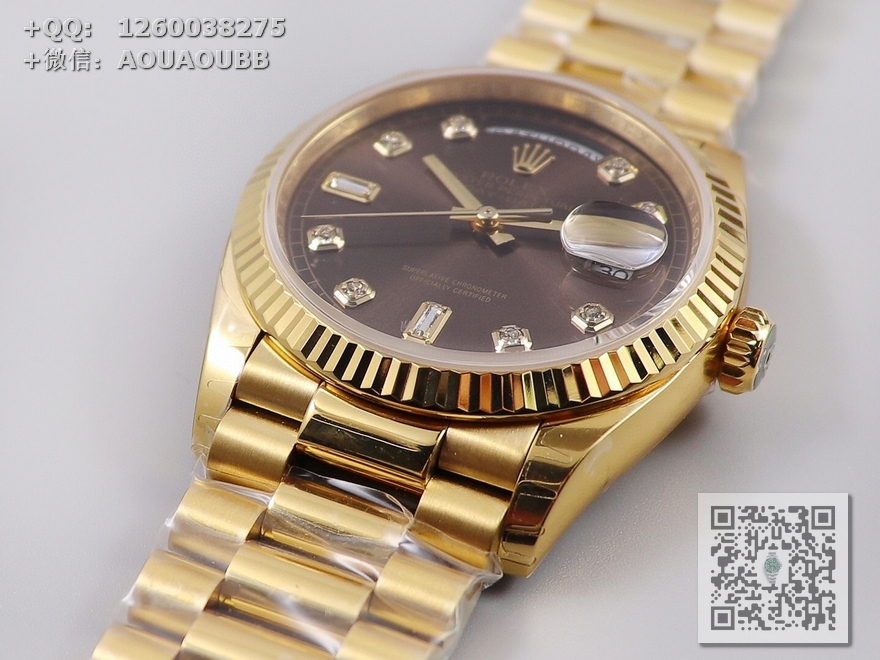 【产品介绍】EW厂V2劳力士星期日志型36终极版 3255自动机械机芯128238系列腕表,36毫米直径,研发耗时一年半,原版1比1开模。重点升级了以下几个要点:1、表壳直径与2019最新版3255型系列一致36毫米。2、表带头粒与原装一致、5件拼装、难度非常高,表带与表壳交错型无缝连结。3、把头皇冠处下方修改为与原版一致的两个圆点。4、表扣与原版一致里面加装了弹簧,字体大小工艺和原装一致。5、表壳侧面与原版一致增加二维码防伪、底盖有验货二维码。6、表壳与表带连接处的壳身刻有与原版一致的型号数字。7、表的内影圈刻上了与保修卡一致的产品流水数字,8、附全套原版套装配置包括(保修卡,说明书,型号条型码与正品一致)全套包装与正品一致(市面上真正的原装一比一星期日历型)