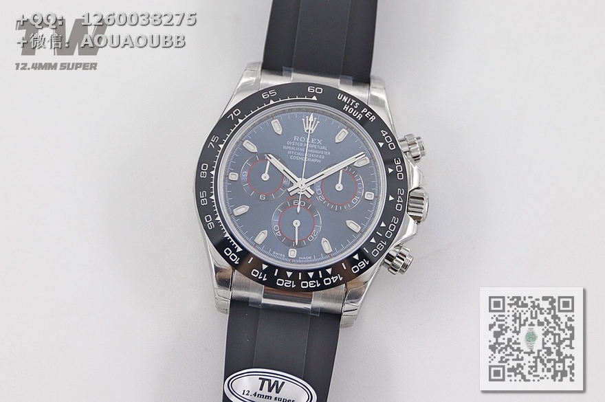 【产品介绍】TW V2横空出世、实现历史性突破!一比一还原劳力士宇宙计型迪通拿。挑战市面一切版本,TW历时3年研发成果,打磨出与正品数据一模一样壳套。️绝对的极致超薄12.4MM厚度(与官方正品12.4MM厚度丝毫无差 实测更薄)。️在提高稳定性的同时将独家定制7750机芯完美嵌入表壳,实现与正品通用壳套配件。️正品同款陶瓷圈口,通过PVD镀膜技术提供了最强质量保证。️字面与正品零色差,还原经典黑色和熊猫色表盘,刻度和指针深度打磨,无毛躁无瑕疵,拒绝一眼假。️优点:针都采用超强夜光,字面钉弧度跟原装一致,陶瓷圈底部刻有logo。          ️(陶瓷圈口字体与原装一致)镜面玻璃凸起是迪通拿的一特点。️胶带款4脚白金印 头粒对准原装可拆卸 市面的一眼假 原装可拆卸头粒。TW与原装一致,表带-壳套真正的采用904L精钢)。TW年度精品——真正意义上的最真、最强宇宙计型迪通拿!!!