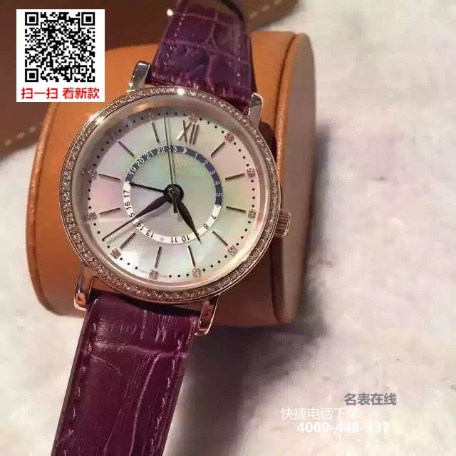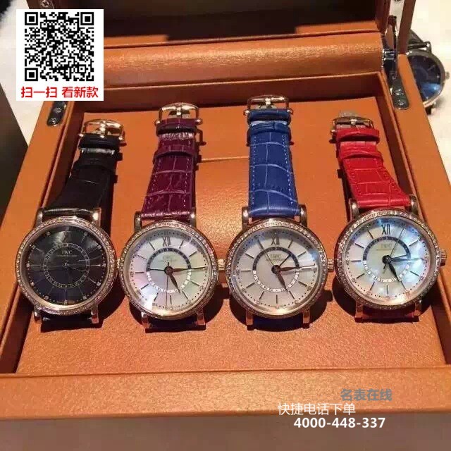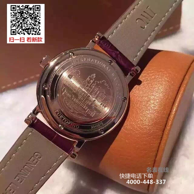 {品牌}:万国{款式}:女款/中性款{尺寸}:直径约37mm;厚度约10mm{表带}:真皮表带{镜面}:蓝宝石抗划镜面{机芯}:瑞士机芯{防水}:50米{配件}:原装盒,说明书,质保卡,吊牌,香港机打发票