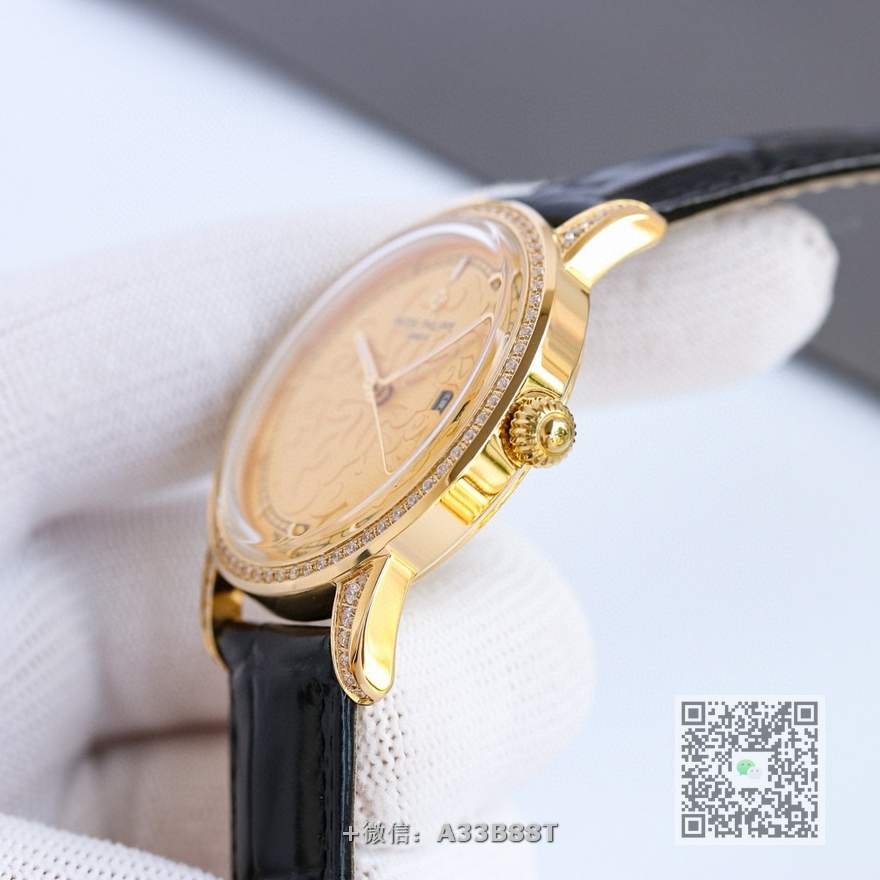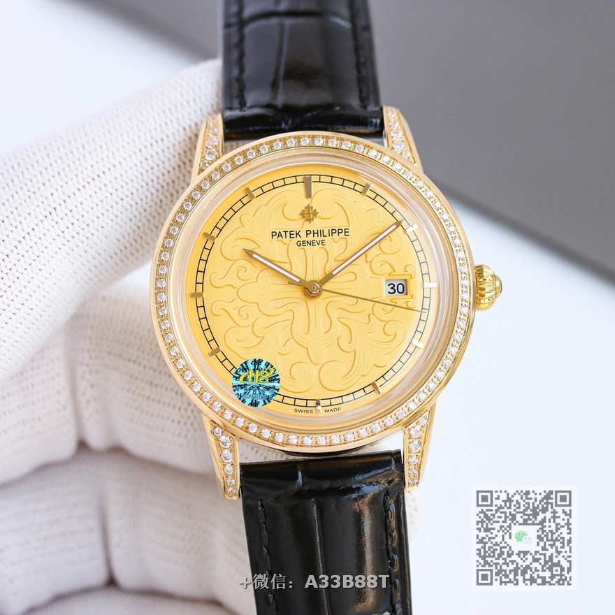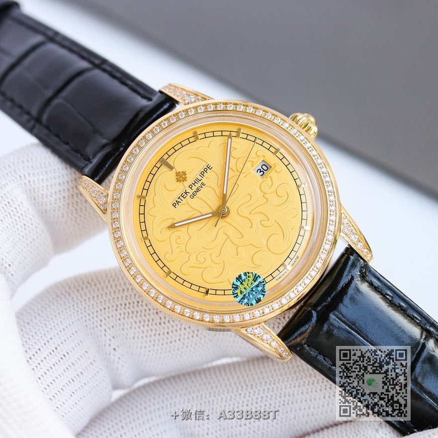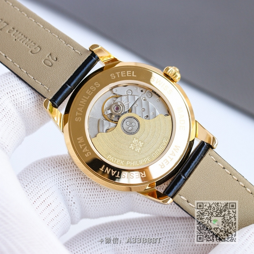 【品牌】百达翡丽【产品介绍】百达翡丽PATEKPHILIPPE,1851百达创始人安东尼推出古典系列腕表,便一鸣惊人,在伦敦世界博览会被英国维多利亚女皇选中,由此奠定了其贵族地位。为追求产品的高境界,百达翡丽鑫在材质选用上不惜工本。追求完美,将最好的腕表呈现给每一位消费者,此款腕表外壳采用国外三重轮廓工艺,先进的抛光技术,锅盖蓝宝水晶镜面,表盘采用力学压孤工艺技术更显棱线美感,手工雕刻表盘,做到真正的完美复刻!直径40mm x 9mm,30m防水,机芯:Calibre 9015,动能存储48小时,意大利牛皮,18k电镀工艺,古典系列腕表价格亲民,物超所值【款式】男款【尺寸】40mmx9mm【表带】意大利牛皮表带【镜面】蓝宝石镜面【机芯】9015机芯【防水】30米【配件】原装盒,说明书,质保卡,吊牌,香港机打发票【品质检测】保证所有手表实物拍摄,所见即所得 , 手表发货前都会有严格检查测试,确保您收到的手表无质量问题