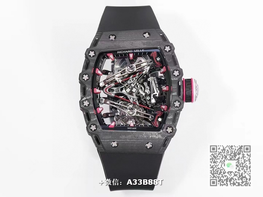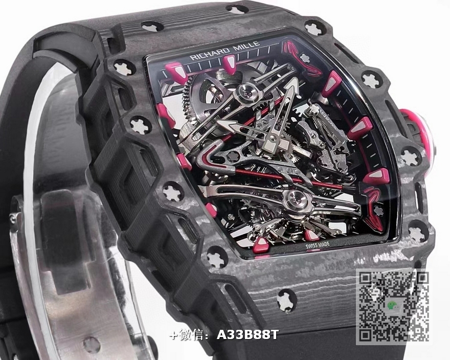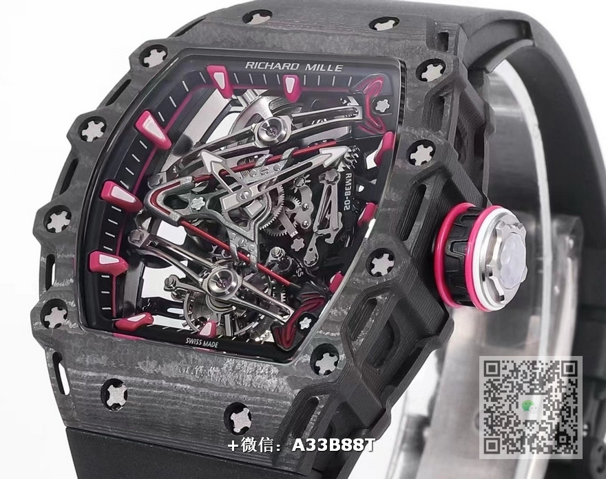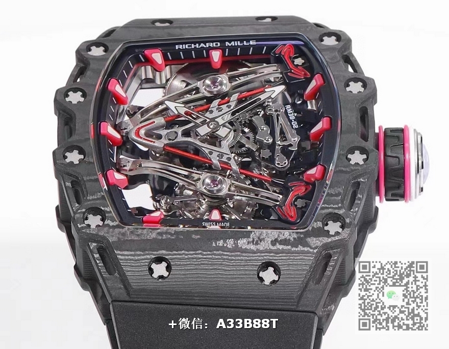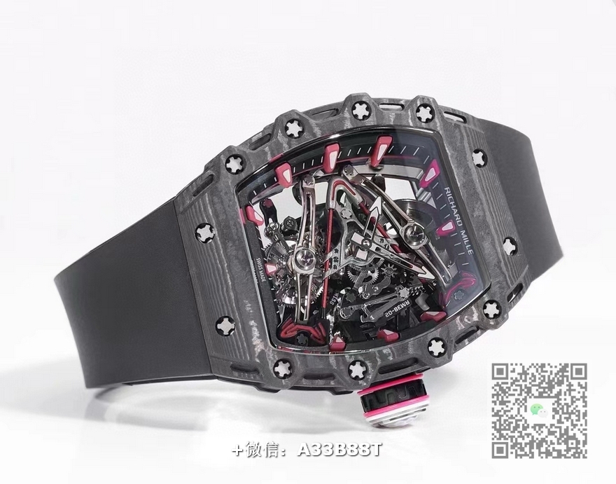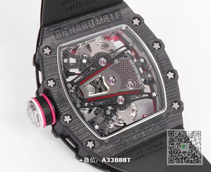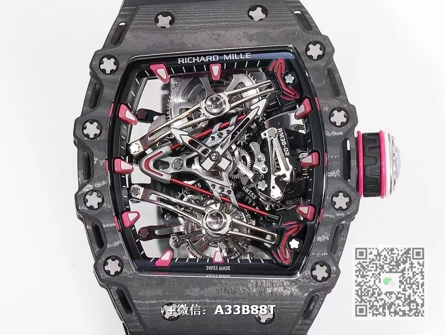市场天花板 理查米尔男士系列RM38-02粉色主题镂空陀飞轮腕表 (陀飞轮腕表与高尔夫职业球手 Bubba Watson 合作设计)